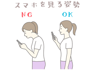 スマホ時間を減らす、首が前に出ないように姿勢を意識する。