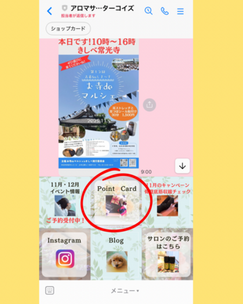 ターコイズの公式LINEの下のメニュー「Point card」をタップ(スマホのターコイズのトーク画面を開ける)