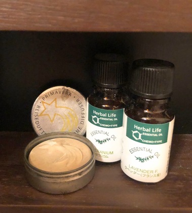 精油はラベンダーやゼラニウムを垂らしています。